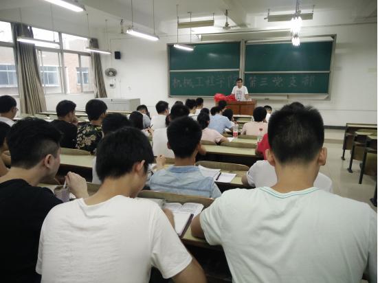 本次集中学习围绕“两学一做”开展为期三天的学习,此次的学习方式采取了分组讨论为主,老师讲课为辅的图书影像相结合的多元化方式。三位支部书记以《习近平重要讲话选编》为思想基础,就严格遵守党员纪律、加强服务型党组织建设,立足岗位做贡献、四讲四有三个大方面分别组织学生进行学习讨论。为营造轻松、易懂的课堂气氛,三位老师所谈言论简介明朗、所举例子平实深刻,将党的精神贯穿到了实际中,充分调动了参训党员的积极性,实现了学生自主思考、敢于发言的良性学习模式。老师们注重学生所提的问题,不耐其烦地去引导,力求每位学员能将“两学一做”精神吃透。每一堂课,老师会组织学生进行感悟的分享,并做出点评补充。来自13级的陈鹏辉就关于“四讲四有”中“讲奉献,有作为”这一点分享了自己几年中做班长的感受。他说:“做班长其实最重要的一点就是要奉献。心里想着同学,为同学服务,同学们的一句感谢,就是我最大的骄傲。”