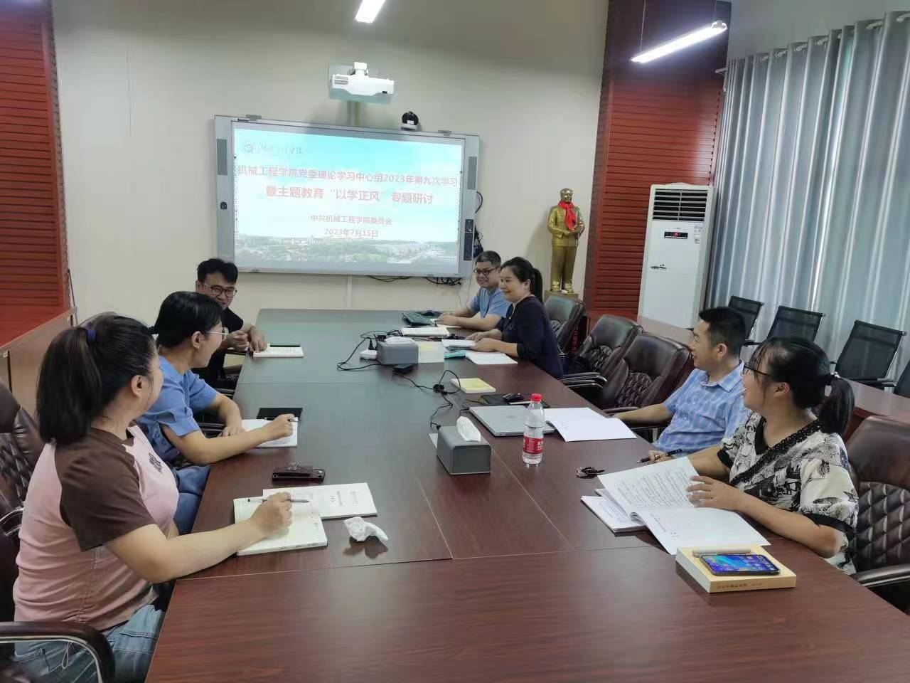 715日下午,1946伟德国际源自英国党委理论学习中心组在机械楼311举行2023年第九次学习暨主题教育“以学正风”专题研讨会,传达学习了习近平总书记对党的建设和组织工作作出重要指示精神:学习习近平总书记在中共中央政治局第六次集体学习时的重要讲话精神;学习《关于认真学习贯彻进一步落实以学正风重要要求的通知》精神;学习《关于在主题教育中认真组织传达学习习近平总书记在文化传承发展座谈会上重要讲话精神的通知》精神。学院党委书记覃波主持学习,学院党委理论学习中心组成员参加此次会议。