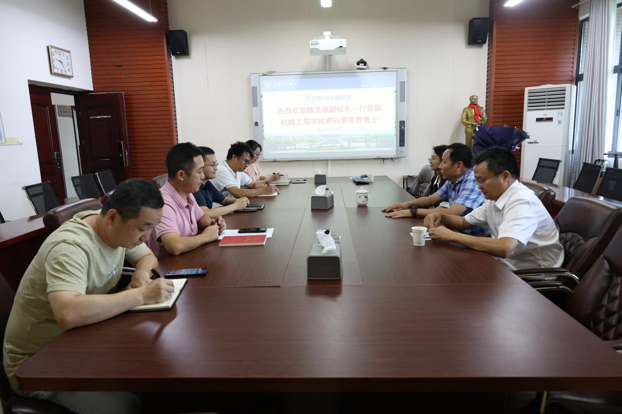在第40个教师节来临之际,9月6日下午,校党委委员、副校长魏克湘带队来我院走访慰问,代表学校向教师代表罗亚君博士及学院全体教师致以节日的祝福和诚挚的问候,科技管理处处长张细政陪同走访。我院全体院领导参加。