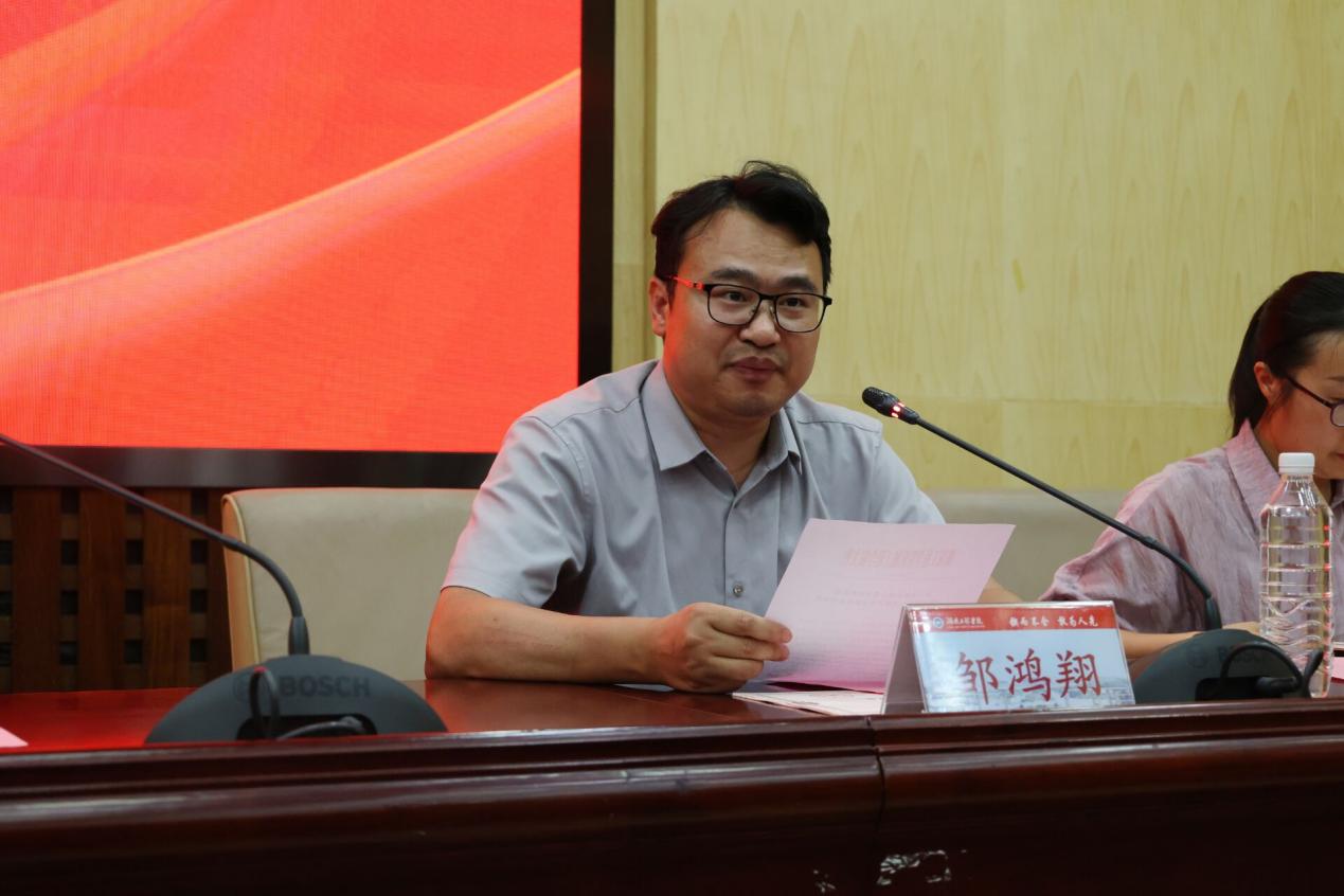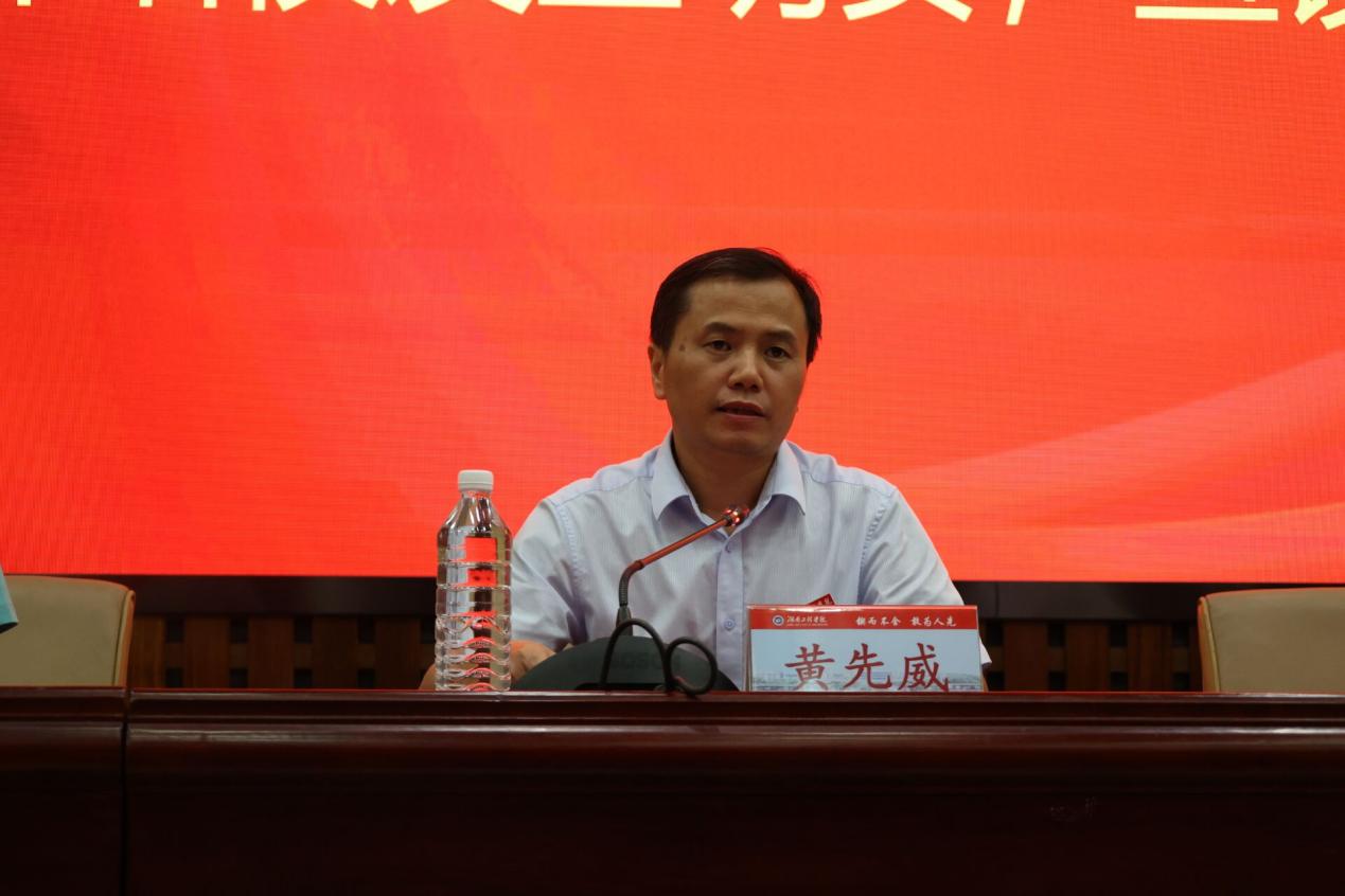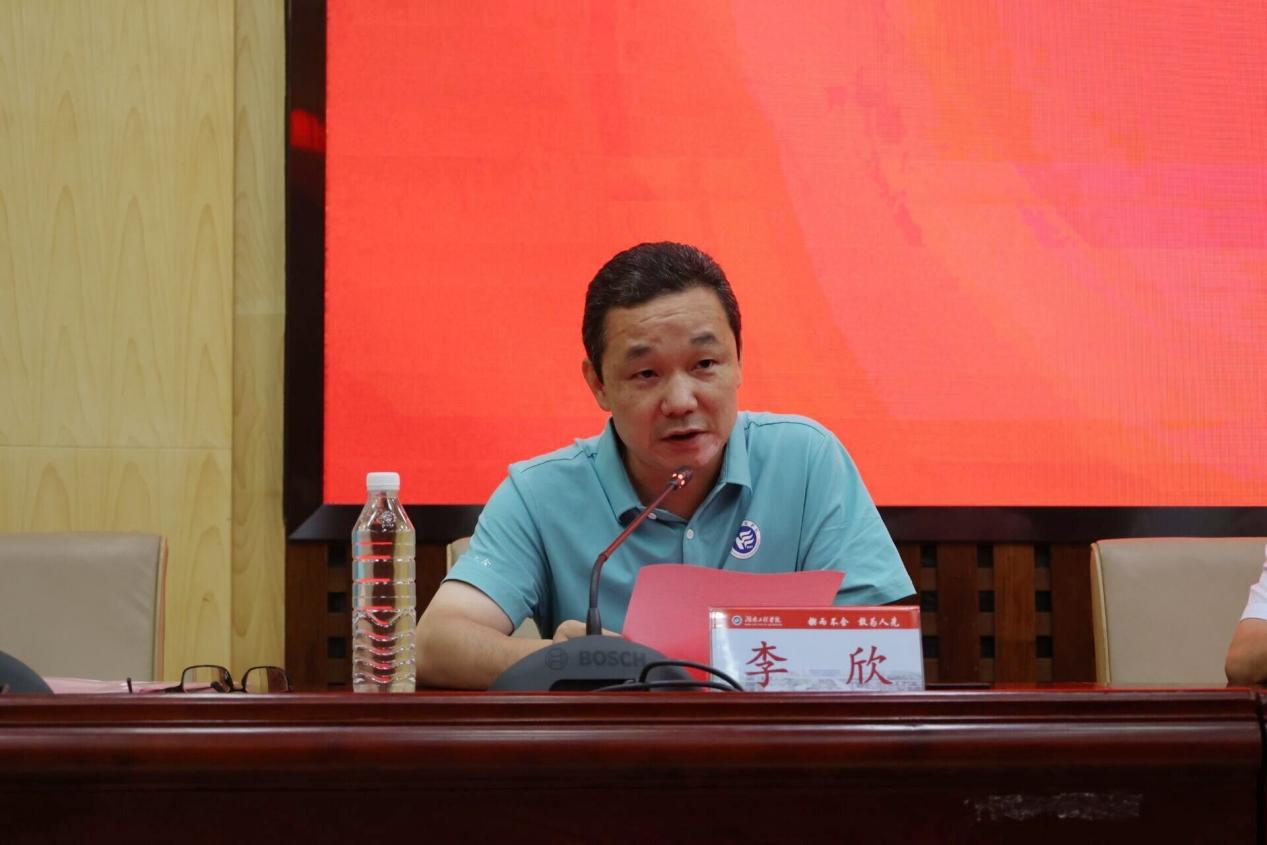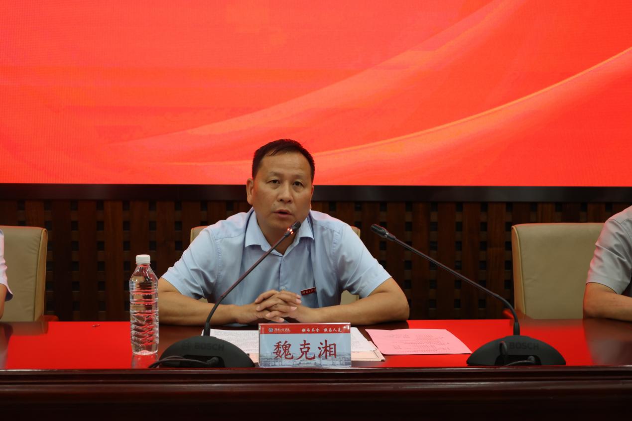 副校长魏克湘发表重要讲话,他代表学校向王明安校友心系母校、连续15年捐资助学的深情厚意表达感谢。他勉励全院学生以王明安校友为榜样,坚定信念,在求学道路上勇攀高峰,苦练本领、做出贡献,回馈社会。