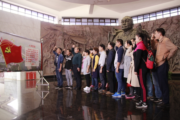 活动中,党员们瞻仰了彭德怀广场的彭德怀元帅铜像,认真参观彭德怀纪念馆和彭德怀同志故居。在彭德怀纪念馆前,所有教职工党员进行庄严的宣誓仪式,宣誓仪式由学院党总支书记谢骐领誓,在高昂的领誓声中,每一名党员高举右拳,面对党旗再一次庄重地作出了自己对党的庄严承诺,表达自己对党的无限忠诚和坚定决心。随后,党员们参观了纪念馆,在解说员的介绍下,大家充分了解了彭德怀的英勇事迹与为中国共产主义事业做出的的伟大贡献,深深感受到了革命先驱们立志报效祖国的爱国情怀与革命精神。