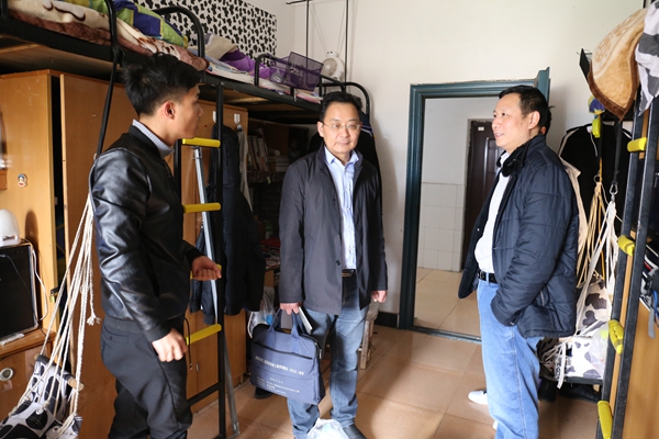 3月13日下午,为了解新学期学生到校情况,17级学生寝室搬迁情况,1946伟德国际源自英国院长魏克湘、党总支书记谢骐、副院长卿上乐、副书记李儒峰深入学生宿舍,看望返校学生。