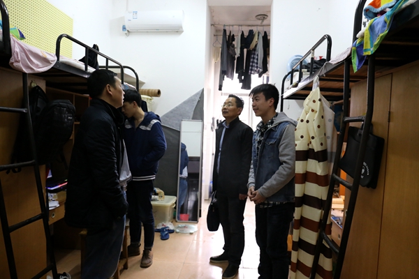 下寝过程中,学院领导与学生们亲切交谈,了解学生返校后的学习和生活状况,并对学院假期的相关事宜和本学年的学习安排进行了介绍,鼓励大家以饱满的热情投入到新学期中去。魏克湘重点查看了滨江8栋新寝设施的安装,询问17级学生对新环境的适应情况。他表示,学院一直在关注学生的宿舍条件,力求给学生创造最优良、舒适的宿舍环境。同时,他强调了寝室的安全和卫生问题,提醒大家要注意防火防盗,保持寝室清洁。谢骐对学风情况进行了重点了解,耐心地解答了学生关于学习生活上的疑问,并希望大家积极奋进,把握大学的美好时光。他指出,同学们要重视寝室的卫生与整洁,养成良好的学习和生活习惯,提醒大家在寝室要经常开窗通风,积极参加户外运动,注意劳逸结合。同学们在其乐融融的氛围中体会到了学院领导的关怀,来自工业工程1701的孙惠云指出,“非常感谢老师们对我们的关怀,我们将会以崭新的面貌投入到新学期的学习和生活中去。”