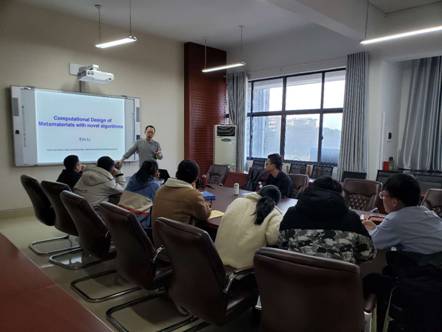 12月27日下午,汽车动力与传动系统湖南省重点实验室在机械楼311会议室开展了题为"Computational Design of Metamaterials with Novel Algorithms(基于高性能计算方法的超材料设计)"学术报告会。报告会由Teesside University高级讲师Li Quan-bing Eric 主讲,1946伟德国际源自英国院长魏克湘主持报告会,部分老师与研究生参加。报告会结束后,大家就学习和科研过程中所遇到的相关问题进行了热烈讨论与交流。