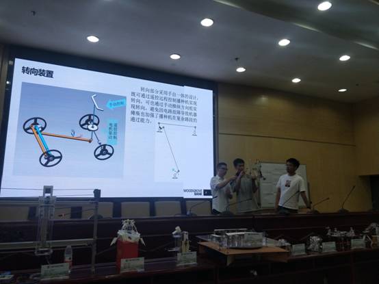 7月8日下午,学校图书馆二报告厅座无虚席,伟德bv1946第三届机械创新团体大赛正在隆重举行。一台自动播种机正在同学的遥控操作下将“种子”均匀的播种在“田埂”里,一条小船自动荡起双桨,在“木鱼湖”里悠然自主前行。一个模仿昆虫爬行的“仿生机器人”正在有规律的亦步亦趋爬行……选手们的精彩呈现,不断获得热烈的掌声。