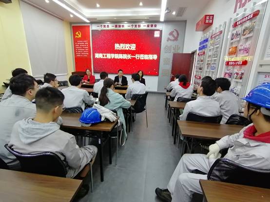 随后,我院老师与正在企业进行实习的2022届卓越计划专业本科生进行了座谈交流。陈国强就企业文化、企业取得的辉煌等方面进行了介绍,给学生未来的职业选择提供了参考。同时,两位该企业的优秀校友李林峰和苏建伟分别就岗位的选择向学生进行了介绍。与会学生也积极发言,就实习过程中遇到的各种困难以及对未来发展的困惑和老师、校友们进行了深刻交流。