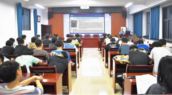 “工业工程专业的学弟学妹们,大家都知道轴向运动圆柱壳结构共振和冲击问题是非线性动力学领域最富挑战性的课题”,余桂林从研究内容的重要性引入讲座。他以“轴向运动圆柱壳非线性问题的研究”为题,重点从研究背景、主要创新内容、与国内外同类技术比较三个方面对轴向运动圆柱壳非线性问题的研究作学术报告。在互动环节,余桂林耐心解答了同学们关于“考研数学如何正确备考?”“学习和研究过程中遇到难点如何处理?”“研究方向如何实质性落地?”“普通家庭学生考研的目的以及意义?”“如何规划好自己的大学生活?”等问题,并给出未来就业方向和读研方面的建议,他还就自己的学术及科研经历与心得体会同在场的老师和同学做分享。
