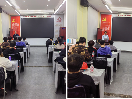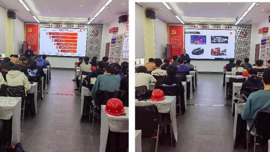 在党员活动室,湖南晓光工匠学院的两位老师给全体学生上了两堂生动的专业课,同学们认真聆听,积极互动。朱林之以“模具制造工艺介绍”为题,围绕汽车车身冲压件介绍,汽车冲压件模具介绍和模具开发制造主要流程介绍三方面做分享。阳新伟结合案例从冲压概念、种类与特点,冲床由来,洗车白车身,汽车覆盖件概念与特点,汽车覆盖件模具与设计,冲压工艺原理六个方面对模具冲压与覆盖件模具做详细讲授。