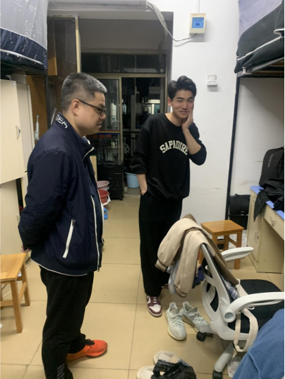 4月20日和27日晚10:00到12:00,1946伟德国际源自英国全体辅导员在学院党委副书记肖彬的带领下,深入学生寝室进行走访慰问。实地了解在校学生的学习、生活及思想动态,送去关心和问候,并排查宿舍安全隐患。