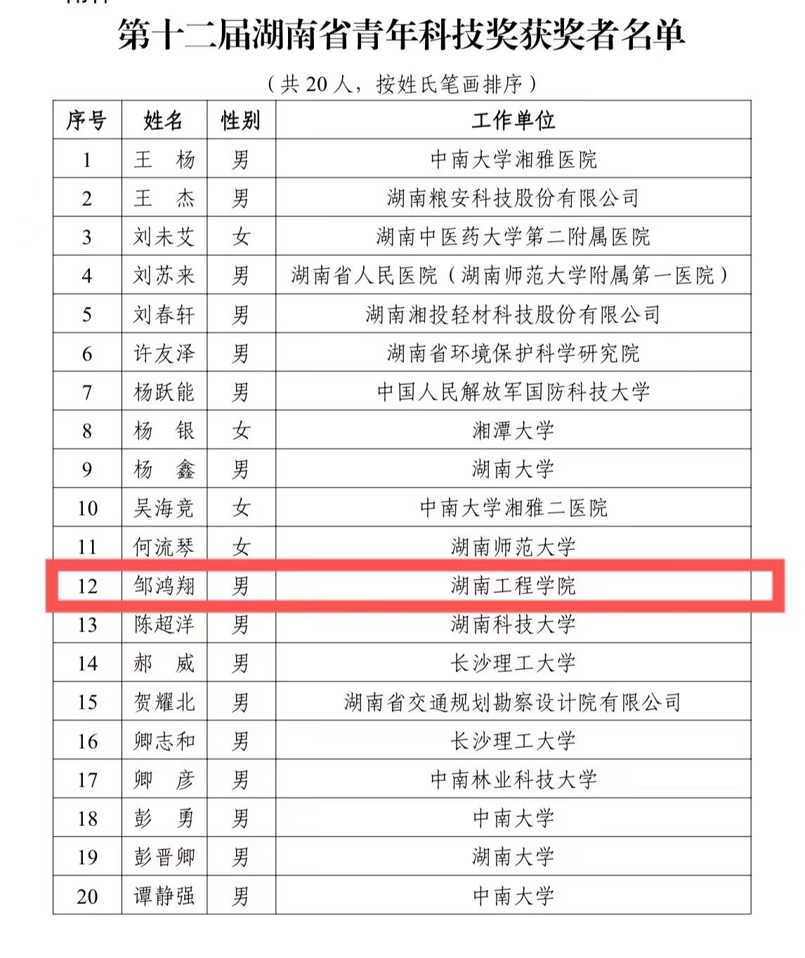 9月21日晚,2023全国科普日(湖南)主场活动暨“科普之夜”晚会在衡阳举办,活动现场为第十二届湖南省青年科技奖20位获奖者颁奖。我校1946伟德国际源自英国邹鸿翔博士荣获“湖南省青年科技奖”称号,并上台领奖。