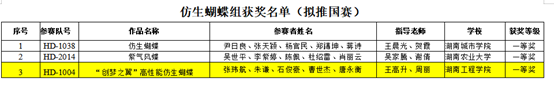 5月10日至12日,第十一届湖南省大学生机械创新设计大赛暨第十一届全国大学生机械创新大赛湖南赛区预赛在湖南文理学院成功举办。我校学生参赛作品获一等奖2项、二等奖1项、三等奖1项,学校获优秀组织奖。其中“创梦之翼”高性能仿生蝴蝶与“智”变双轨一多功能山药智耕一体机获省一等奖,其中“创梦之翼”高性能仿生蝴蝶晋级国赛。
