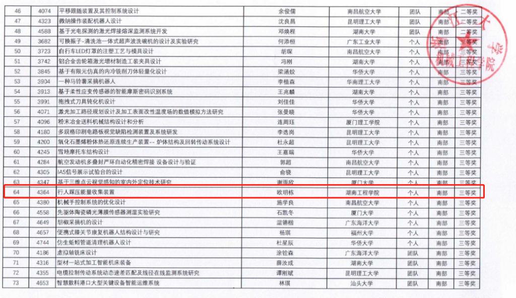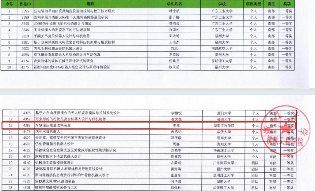近日,2024年中国大学生机械工程创新创意大赛·“精雕杯”毕业设计大赛区域赛获奖名单公布,我院邹鸿翔博士指导的学生李享荣获南部赛区一等奖并入围全国总决赛,程玉兰博士指导的学生欧明栋荣获南部赛区三等奖。