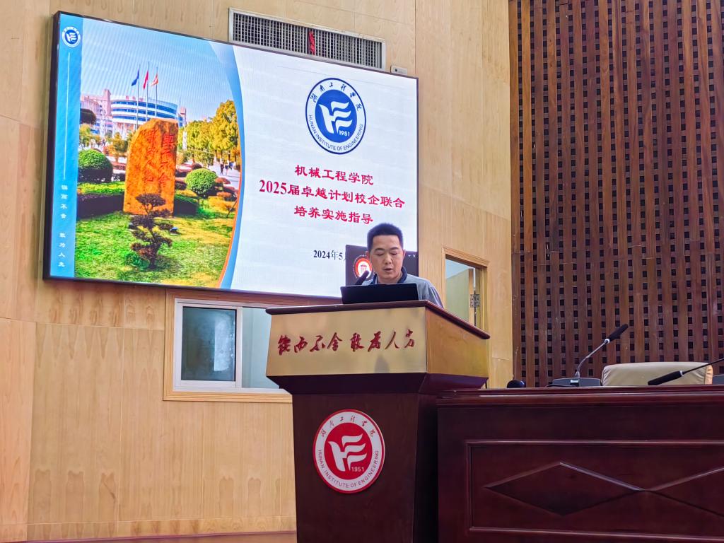 陈国强院长在指导会上从四个方面对同学们进行了切实的指导,一是介绍了“卓越计划”实施背景与目的,强调了其契合国家对于卓越工程师培养的战略需求;二是讲解了“卓越计划”校企联合培养平台为同学们提供了宝贵的成长和学习的机会;三是讲解了“卓越计划”的具体安排和要求,特别是校企联合开发课程的授课方式及其标准;四是强调了职业规划对大家的重要性,职业规划不仅关乎个人的未来发展和职业成就,更是对自己能力和兴趣的一次全面审视和树立,大家务必对校企双选会予以重视。最后,陈国强院长强调了在企业联合培养过程中需要注意的事项,在企学习中要加强与校、企指导老师的沟通,同学们要充分利用在企平台培养机会,主动学习和思考,不断提升自己的专业素养和实践能力,也要求同学们要严格遵守企业规定和纪律要求,认真履行学习职责。