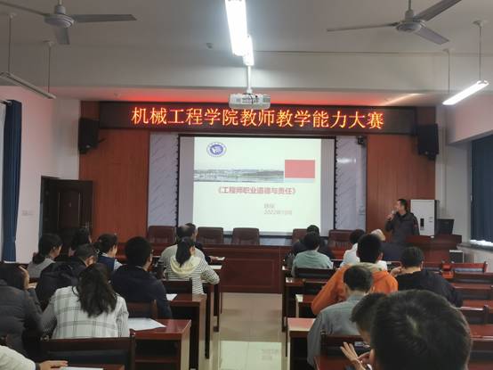 在学院开展的青年教师教学竞赛上,陈琛老师就工程师职业道德与责任课程,进行了课堂展示,课后,几位督导专家提出了宝贵意见,一是课程主题引用更多工程实际案例,二是课程目标结合人才培养方案进行更新。
