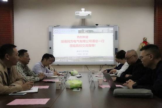 魏克湘对谭少文一行的到来表示热烈欢迎,他从办学历程、专业设置、师资结构、人才培养等方面介绍我校基本情况,特别介绍了“百名博士下企业”、“校企共建实验室”等多种校企合作的方式。魏克湘表示,期待后续校企双方从人才培养,卓越计划实习、技术合作等多角度开展合作,为企业、社会培养出更多的优秀人才,为地方经济发展贡献力量。