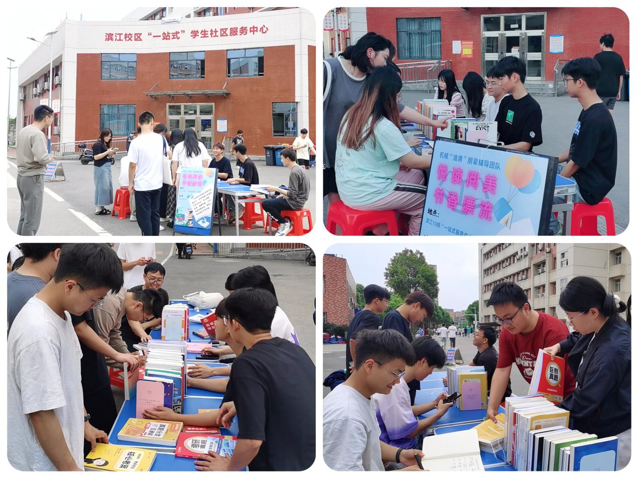 活动现场,路过的学生被书架上摆满的文学、历史、科技、考研等书籍吸引。大部分书籍来自大四学生的捐赠,其中考研书籍和资料为低年级学生学习提供有益帮助。参与活动的学生或挑选自己感兴趣的书籍,或驻足阅读,或与他人交流心得。现场气氛热烈而融洽,书香气息弥漫在整个滨江宿舍区。“这个活动真有意义,不仅让我感受到了阅读的乐趣,也结交了许多志同道合的朋友,拓宽了视野和思路”,参加活动的学生说。