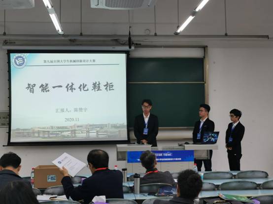 我院师生从去年11月份着手准备,疫情期间通过视频会议商讨方案,暑期返校后完成实物模型制作,最终赢得评审专家的一致好评。《智能一体化鞋柜》作品(指导老师:唐谦、刘胜;参赛学生:陈赞宇、宁芝灵、杨沛璨、邓晓翔、汤欣欣)获得全国一等奖;《多功能自动助老床》作品(指导老师:王高升、白泉;参赛学生:柳董杰、葛可涵、陈敏、卢磊、毛紫瑞)获得全国二等奖。另王高升获得第九届全国大学生机械创新设计大赛慧鱼组优秀指导教师。