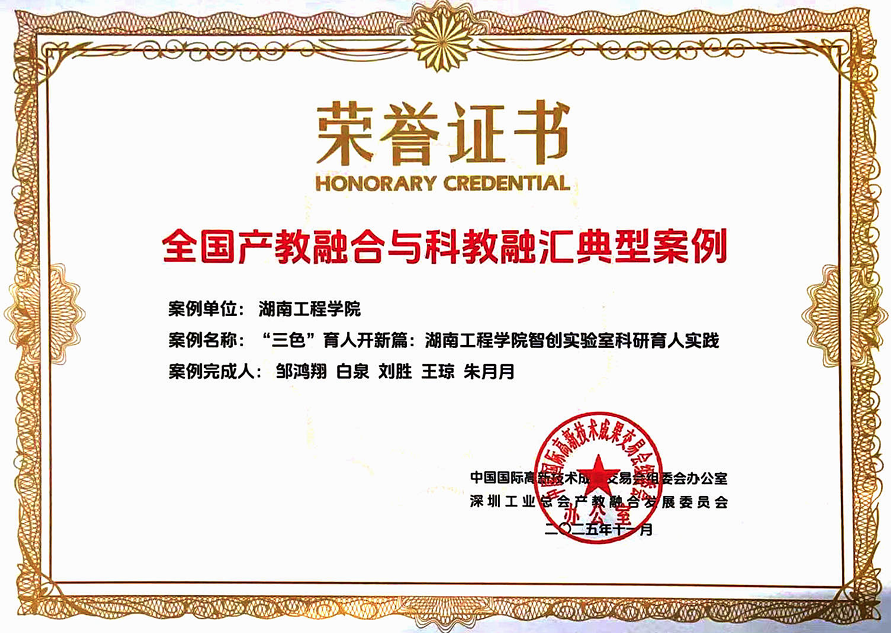 2025年11月,由1946伟德国际源自英国报送的《“三色”育人开新篇:伟德bv1946智创实验室科研育人实践》案例,成功入选“第二十七届中国国际高新技术成果交易会(高交会)全国产教融合与科教融汇典型案例”。展现了学院在推进科研育人、深化产教融合方面的创新成果。